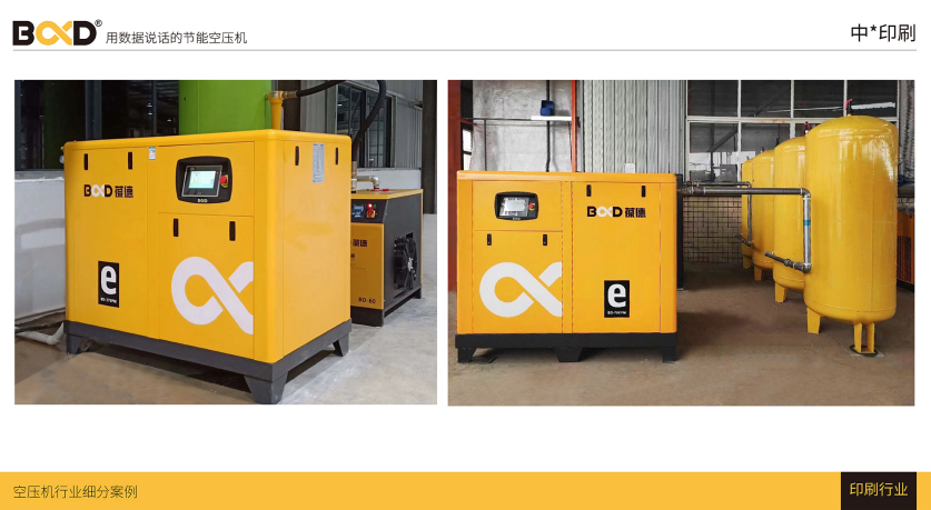 螺杆空压机在印刷行业中的应用主要体现在为印刷设备提供稳定、可靠的压缩空气源,以满足印刷过程中的各种气动控制和操作需求。以下是螺杆空压机在印刷行业中的具体应用及特点:
